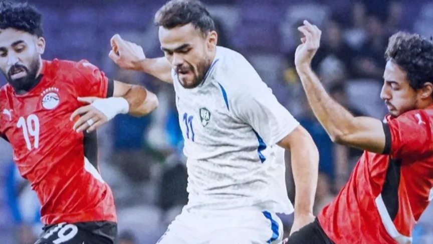 أوستون أورونوف مهاجم أوزبكستان يتخطى محمد هاني ومروان عطية ثنائي منتخب مصر في لقاء ودي - 14 نوفمبر 2025 - x@UzbekistanFA