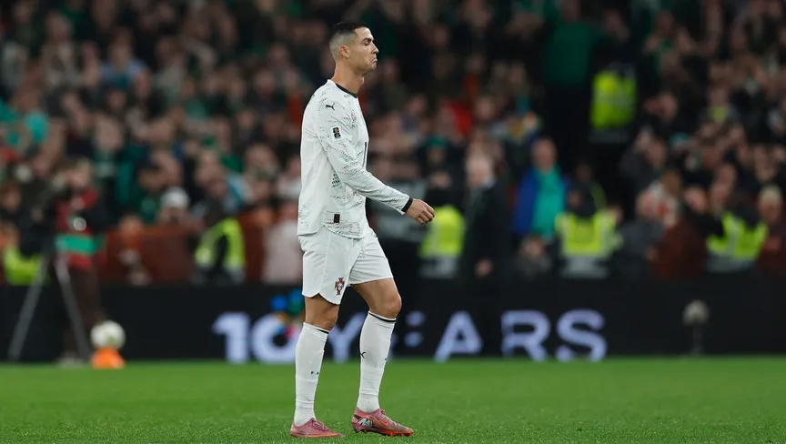 كريستيانو رونالدو بعد طرده خلال مباراة بين البرتغال وإيرلندا في تصفيات كأس العالم 2026 - 13 نوفمبر 2025 - REUTERS