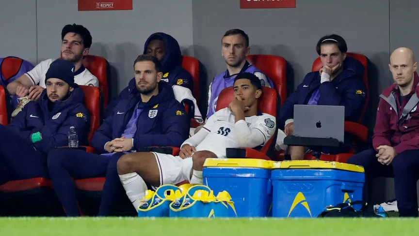 ولوّح بيلينغهام بيديه تعبيراً عن الاستياء من قرار سحبه من الملعب، رغم حصوله على بطاقة صفراء كانت تهدده بالإيقاف عن أولى مباريات إنجلترا في كأس العالم 2026.