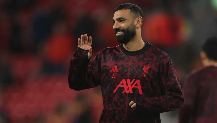 محمد صلاح أثناء الإحماء قبل مباراة بين ليفربول وأستون فيلا - 1 نوفمبر 2025 - REUTERS