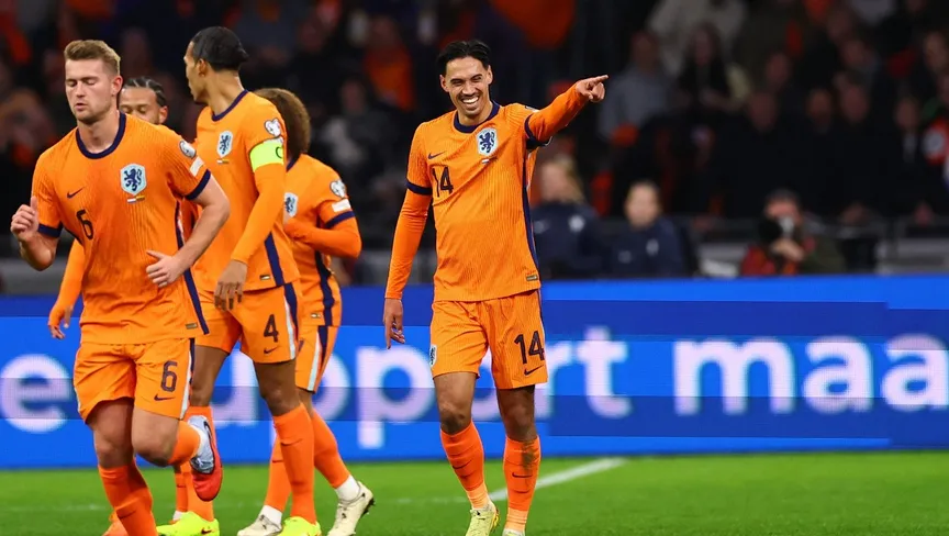 تيجاني ريندرز لاعب هولندا يحتفل بالتسجيل ضد ليتوانيا - 17 نوفمبر 2025 - Reuters