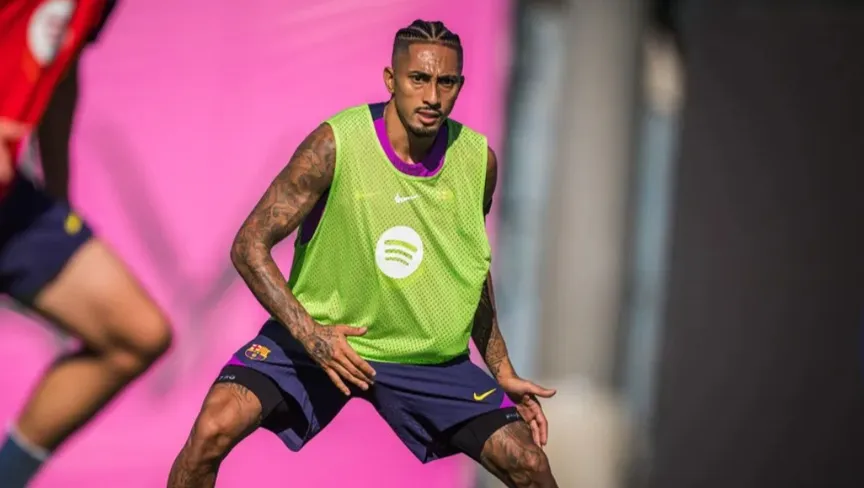 لاعب برشلونة رافينيا خلال تدريبات الفريق - 22 أكتوبر 2025 - www.fcbarcelona.com