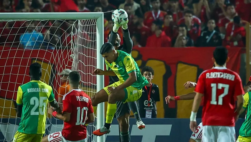 محمد الشناوي حارس الأهلي يتصدى لكرة خلال مواجهة شبيبة القبائل - 22 نوفمبر 2025 - FB/alahly
