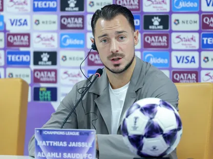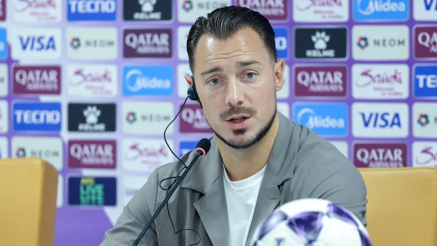 ماتياس يايسله مدرب الأهلي في مؤتمر صحفي قبل مواجهة الدحيل في دوري أبطال آسيا للنخبة - 28 سبتمبر 2025 - X/@ALAHLI_FC
