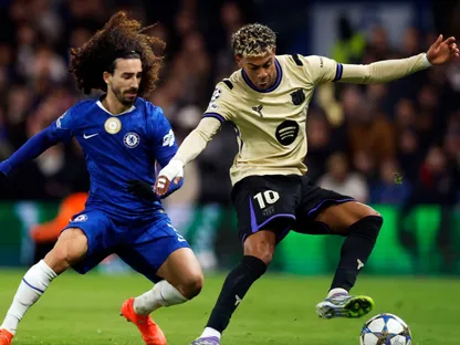 مارك كوكوريا يتفوق على لامين يامال في مباراة تشيلسي وبرشلونة بدوري أبطال أوروبا - 25 نوفمبر 2025 - Reuters