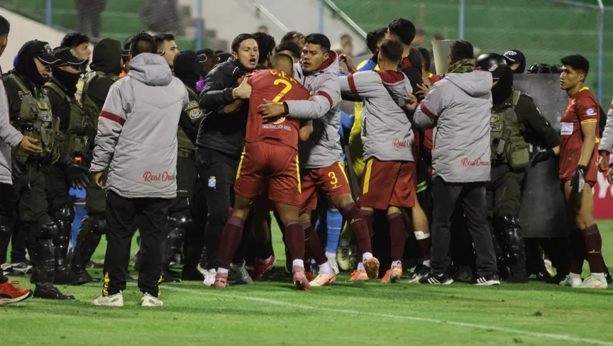 تحولت مباراة ريال أورورو وبلومينغ في إياب ربع نهائي كأس بوليفيا إلى شجار عنيف، نجم عنه 17 بطاقة حمراء وتدخل الشرطة.