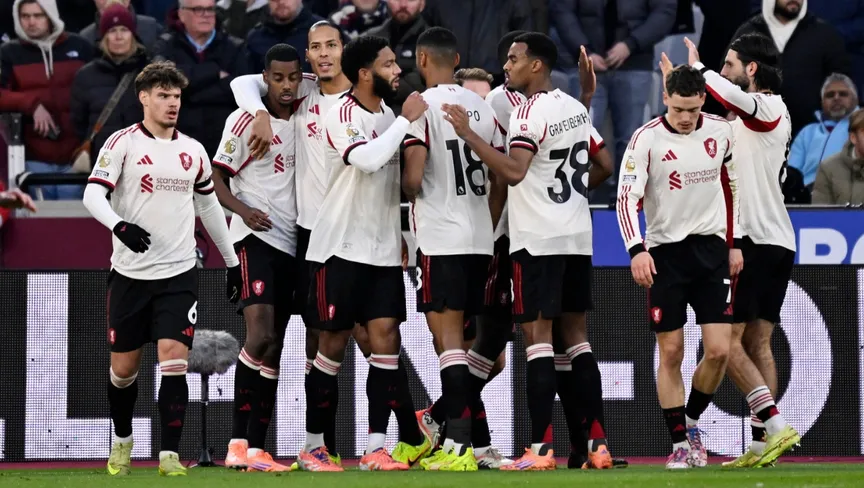 لاعبو ليفربول يحتفلون بهدف ألكسندر إيزاك في مرمى وست هام في الدوري الإنجليزي الممتاز - 30 نوفمبر 2025 - Reuters