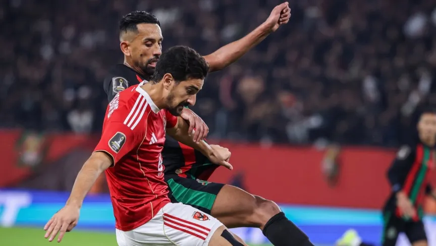 محمد علي بن رمضان يمرر عرضية هدف تعادل الأهلي أمام الجيش الملكي في دوري أبطال إفريقيا - 28 نوفمبر 2025 - Ahly/x