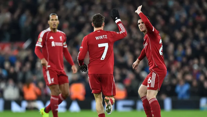 لاعبو ليفربول يحتفلون بهدف التعادل أمام سندرلاند في الدوري الإنجليزي الممتاز - 3 ديسمبر 2025 - Reuters