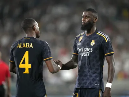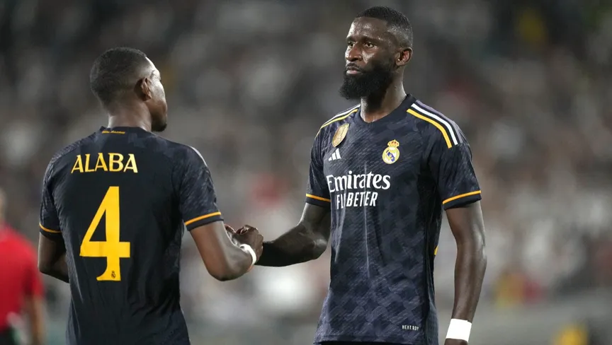 أنطونيو روديغر ودافيد ألابا ثنائي دفاع ريال مدريد خلال مواجهة ودية ضد ميلان في كاليفورنيا - 24 يوليو 2023 - Reuters