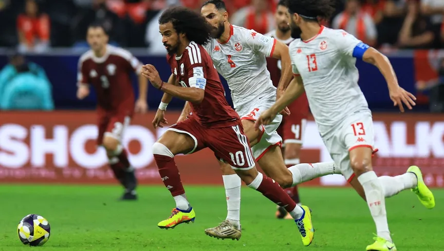 أكرم عفيف من مباراة قطر وتونس بمنافسة "كأس العرب" - 7 ديسمبر 2025 - Reuters