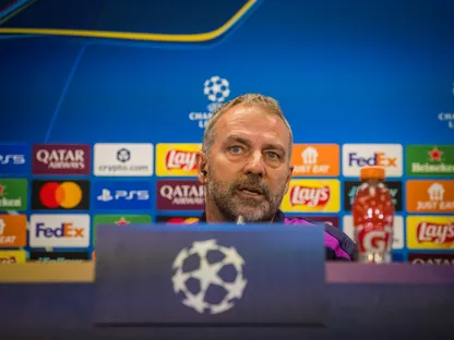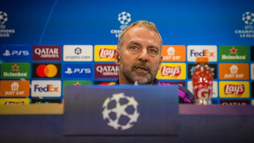 هانزي فليك مدرب برشلونة في مؤتمر صحفي قبل مواجهة أينتراخت فرانكفورت في دوري أبطال أوروبا - 8 ديسمبر 2025 - X/@FCBarcelona_es