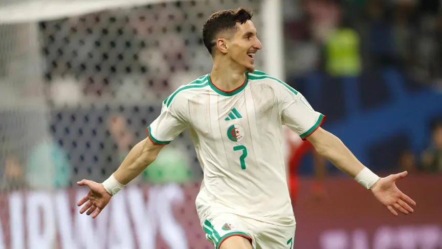 عادل بولبينة يحتفل بهدفه في مباراة الجزائر والبحرين بكأس العرب - 6 ديسمبر 2025 - FB/Équipe d'Algérie de football