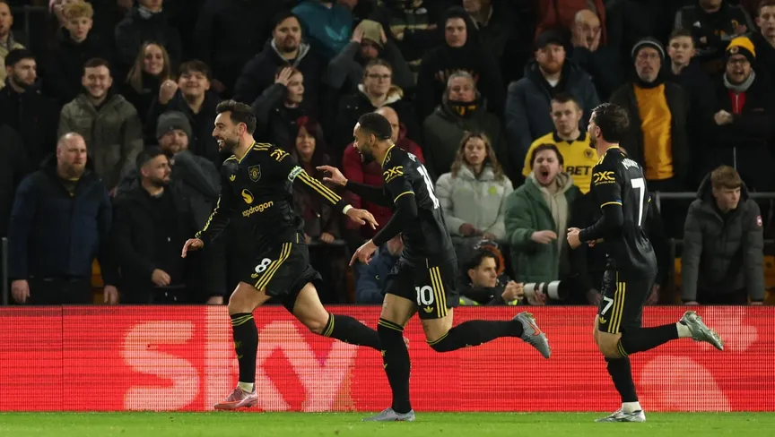 احتفال برونو فيرنانديز بهدفه في مباراة ولفرهامبتون ومانشستر يونايتد بالدوري الإنجليزي الممتاز - 8 ديسمبر 2025 - Reuters