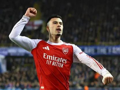 سجل غابرييل مارتينيلي الهدف الثالث ليضمن فوز فريقه (3-0) على كلوب بروج بتسديدة رائعة من خارج منطقة الجزاء.