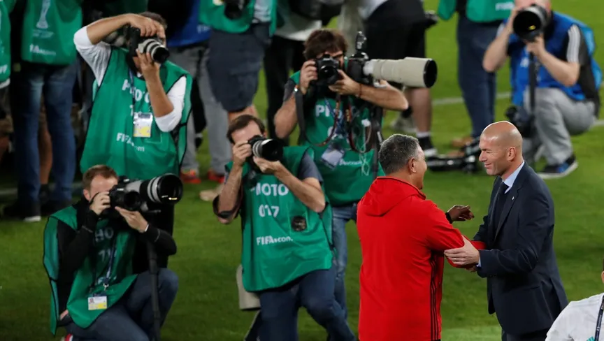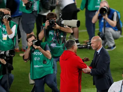هينك تن كات مدرب الجزيرة يصافح زيدان مدرب ريال مدريد في مونديال الأندية - 13 ديسمبر 2017 - Reuters