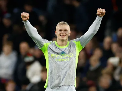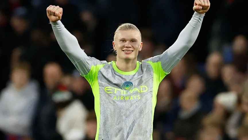 إيرلينغ هالاند مهاجم مانشستر سيتي يحتفل بهدفه الثاني أمام كريستال بالاس في الدوري الإنجليزي الممتاز - 14 ديسمبر 2025 - Action Images via Reuters