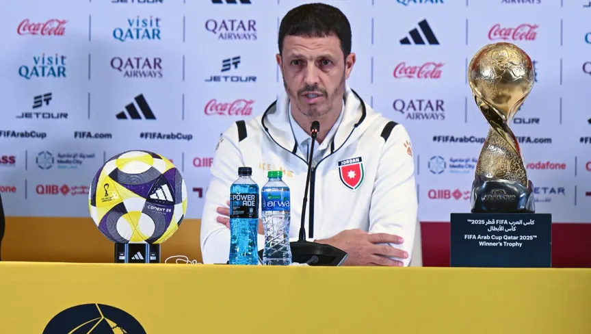 جمال سلامي مدرب الأردن في مؤتمر صحفي قبل نهائي كأس العرب - 17 ديسمبر 2025 - X/@aawsat_spt