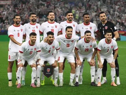 لاعبو الأردن قبل مباراة المغرب في نهائي كأس العرب - 18 ديسمبر 2025 - Reuters