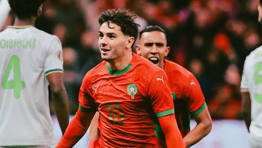 براهيم دياز مهاجم المغرب يحتفل بهدفه أمام جزر القمر في افتتاح كأس الأمم الإفريقية - 21 ديسمبر 2025 - X/@CAF_Online