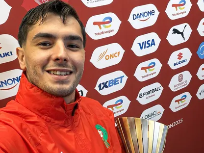 براهيم دياز يحتفل بجائزة رجل مباراة المغرب وجزر القمر في افتتاح كأس أمم إفريقيا - 21 ديسمبر 2025 - X@EnMaroc