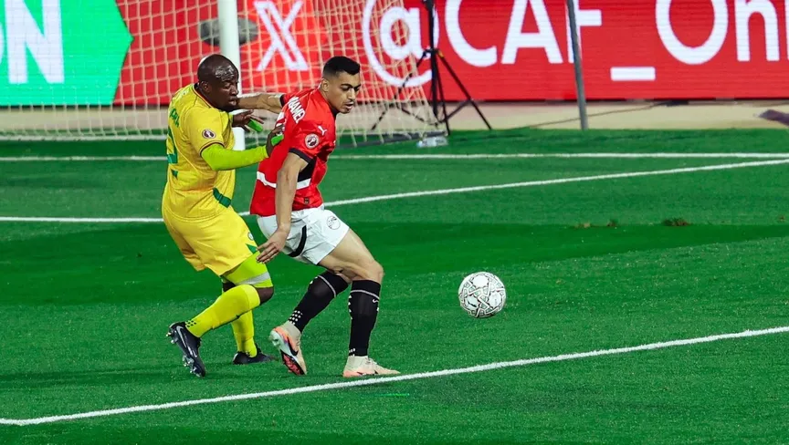 مصطفى محمد مهاجم مصر خلال لقاء زيمبابوي بكأس أمم إفريقيا - 22 ديسمبر 2025 - X@EFA