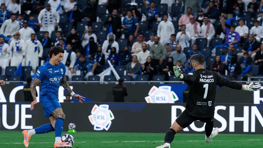 داروين نونيز لدى تسجيله هدفاً للهلال في مرمى الفتح بالدوري السعودي - 22 نوفمبر 2025 - X/@Alhilal_FC