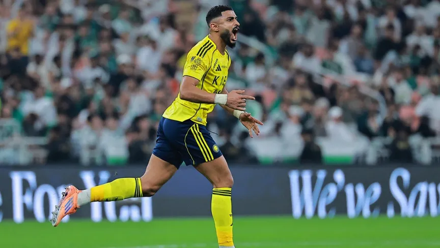 احتفال عبد الإله العمري بتسجيل هدف للنصر في مرمى الأهلي بالدوري السعودي - 2 يناير 2026 - Reuters