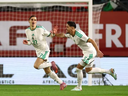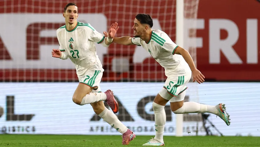 احتفال لاعبي الجزائر بتسجيل هدف في مرمى الكونغو الديمقراطية بربع نهائي كأس إفريقيا - 6 يناير 2026 - Reuters