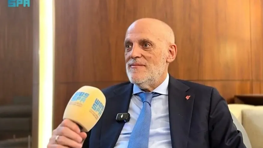 خافيير تيباس رئيس رابطة الدوري الإسباني خلال مقابلته مع وكالة الأنباء السعودية - 10 يناير 2026 - X/@SPA_Spor