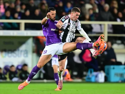 بابلو ماري مدافع فيورنتينا في مواجهة فلاهوفيتش مهاجم يوفنتوس - 22 نوفمبر 2025 - Reuters