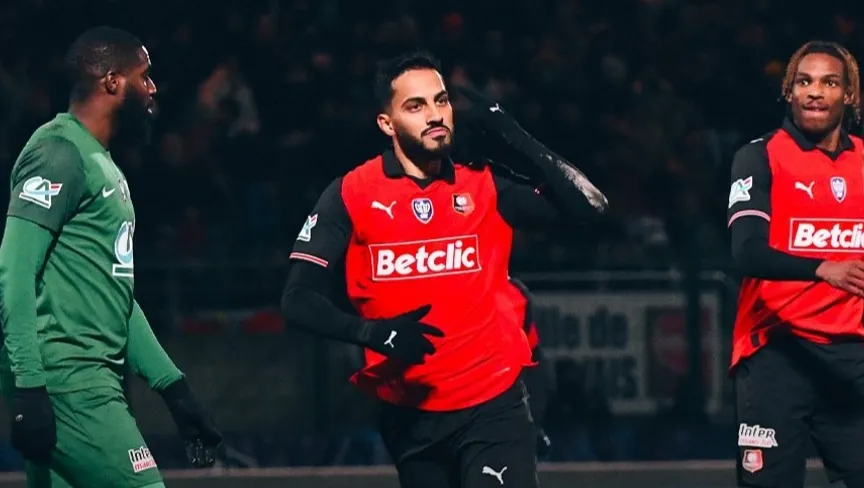 احتفال موسى التعمري نجم رين بتسجيل هدف في مرمى شانتيلي في كأس فرنسا - 11 يناير 2026 - X/@staderennais