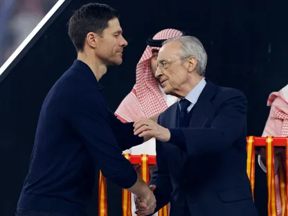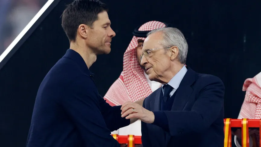 تشابي ألونسو وفلورنتينو بيريز بعد نهائي كأس السوبر الإسباني بين برشلونة وريال مدريد - 11 يناير 2026 - Reuters