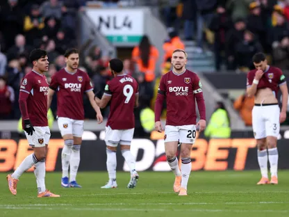 لاعبو وست هام يونايتد خلال مباراة ولفرهامبتون في الدوري الإنجليزي الممتاز - 3 يناير 2026 - Reuters