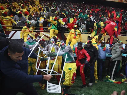 اندلع الشغب فور احتساب ركلة جزاء لمصلحة المغرب في الوقت بدل الضائع بنهائي كأس أمم إفريقيا، إثر خطأ ارتكبه لاعب سنغالي.