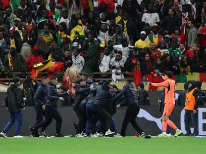 في لحظة توتر خلال نهائي كأس أمم إفريقيا، اقتحم مشجعون سنغاليون الملعب اعتراضاً على قرارات الحكم أمام المغرب.