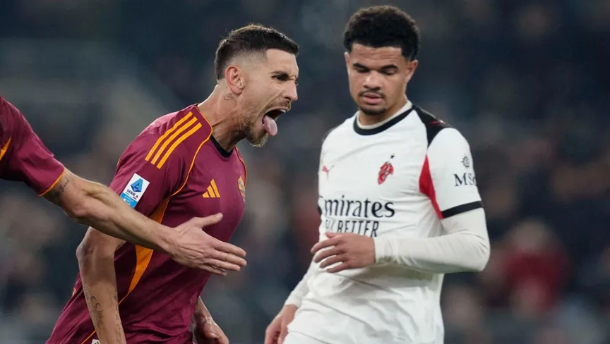 الإيطالي لورينزو بيليغريني يحتفل بهدف تعادل روما أمام ميلان في الدوري الإيطالي - 25 يناير 2026 - Reuters