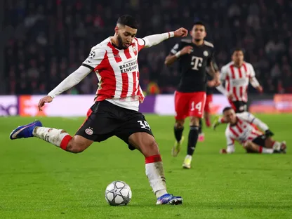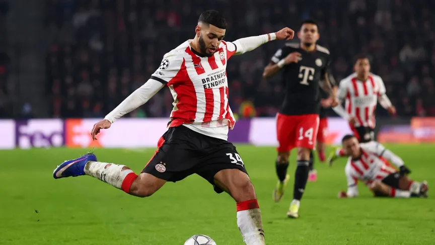 إسماعيل صيباري لاعب آيندهوفن لحظة تسجيل هدف رائع في مرمى بايرن ميونيخ بدوري أبطال أوروبا - 28 يناير 2026 - Reuters