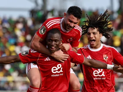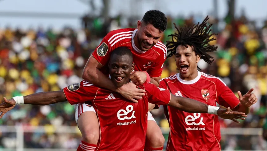 ياسر إبراهيم يحتفل مع أليو ديانغ بهدف في مباراة الأهلي ويانغ أفريكانز بدوري أبطال إفريقيا - 31 يناير 2026 - x/@alahly