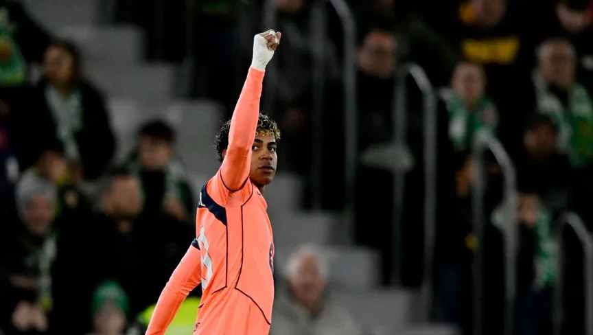 لامين يامال يحتفل بهدفه في مباراة إلتشي وبرشلونة بالدوري الإسباني - 31 يناير 2026 - Reuters