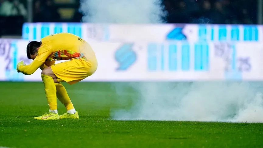 وسارع لاعبو الفريقين إلى نجدة الحارس فور سماع دوي الانفجار، فيما توجه لاوتارو مارتينيز، قائد إنتر، نحو المدرجات لتهدئة الأوضاع، ومنع تفاقم الأحداث، بمساعدة المدير الفني كريستيان تشيفو.
