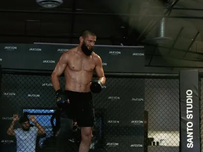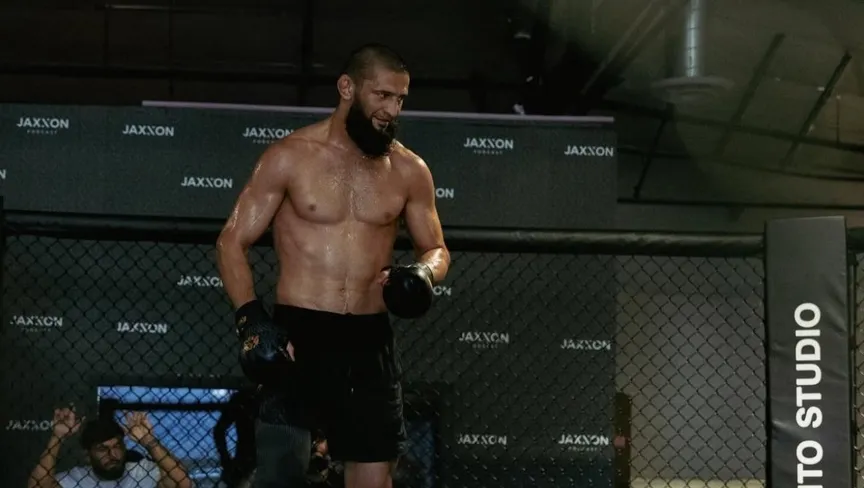 حمزة شيماييف خلال التدريبات استعداداً للنزال ضد دريكيس دو بليسيس - 7 أغسطس 2025 - X/@KChimaev