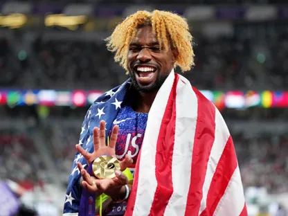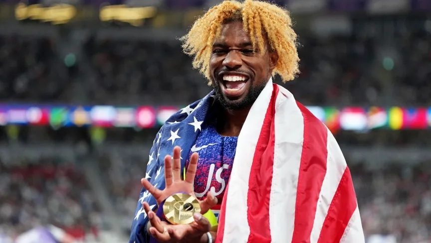 ورفع لايلز، الذي حل ثالثاً في دفاعه عن لقب سباق 100م الأحد الماضي، 4 أصابع لأعلى بعد عبور خط النهاية، إذ عادل بذلك رقم الأسطورة يوسين بولت، الذي فاز بأربع ذهبيات متتالية من 2009 إلى 2015.