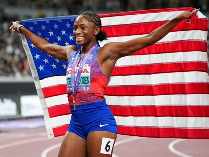 وعادلت جيفرسون-وودن الرقم الذي حققته الجامايكية شيلي-آن فريزر برايس (2015)، إضافة للألمانيتين سيلكه غلاديش (1987) وكاترين كرابي (1991)، المتمثل في الفوز بسباقي 100م و200م في نسخة واحدة من بطولة العالم.
