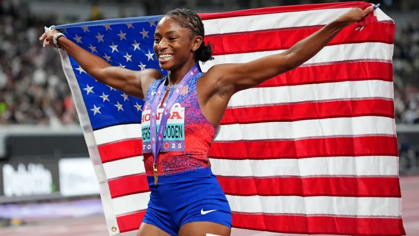 أصبحت الأميركية ميليسا جيفرسون-وودن رابع عداءة تحرز لقب سباقي 100م و200م في بطولة العالم لألعاب القوى، بعد فوزها بسباق 200م بزمن 21.68 ثانية الجمعة.