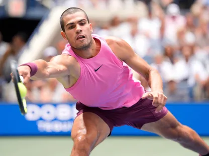 تخطى المصنف الثاني كارلوس ألكاراز مخاوف من إصابة في الركبة في طريقه للفوز 6-2 و6-4 و6-صفر على لوتشيانو دارديري في الدور الثالث لبطولة أميركا المفتوحة للتنس اليوم الجمعة محققاً انتصاره رقم 80 في البطولات الأربع الكبرى.