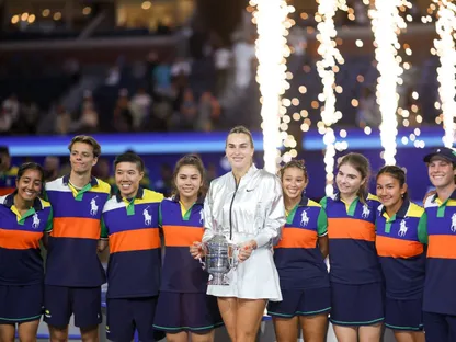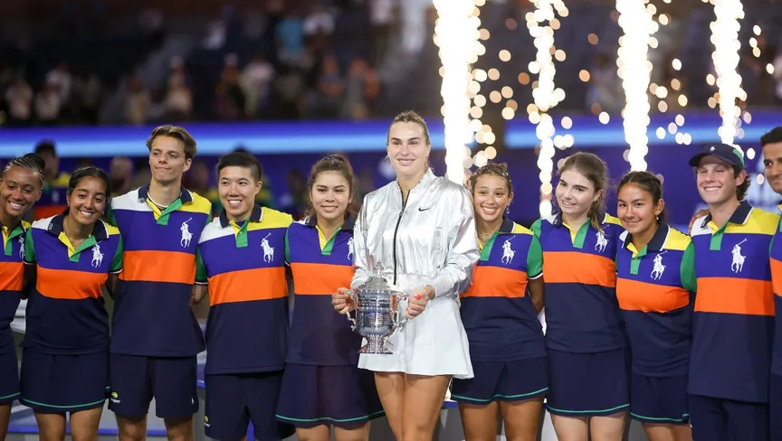 حولت سابالينكا كل الخيبات، بعد هزيمتها في المباراتين النهائيتين في ملبورن وباريس وخسارة قبل نهائي ويمبلدون أمام أنيسيموفا، إلى طاقة لتظهر في المؤتمر الصحفي وهي في حالة احتفالية والنظارة الواقية مثبتة فوق رأسها.